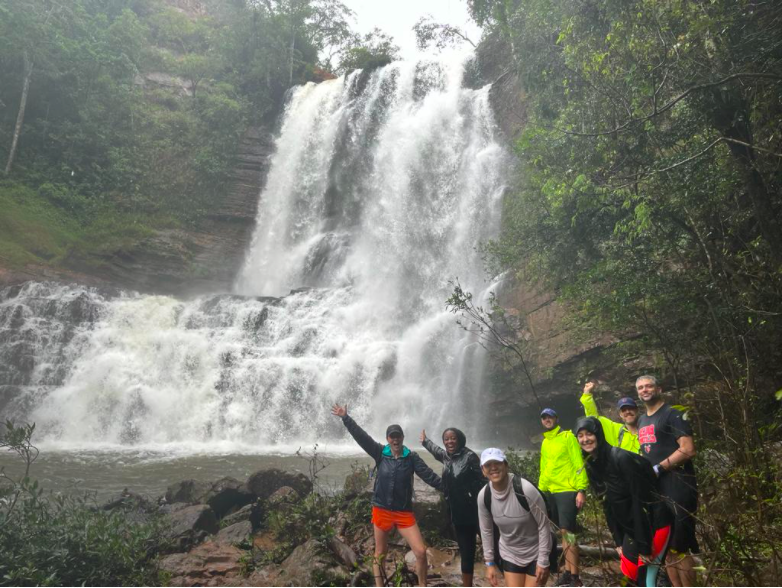 A few weeks ago, members of the EAB Leadership Team took our newest member, incoming LS Principal Beth Overby, on a hike to a series of waterfalls close to Brasilia called Indaia. The weather looked sketchy throughout the drive and by the time we arrived, the rain had begun. Our goal was to arrive at the largest waterfall on the trip. To do so, we had to traverse the river. As you can see from the photo below, on our way out, the water was clear and moved slowly.